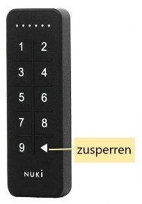 Um die Türe von außen zuzusperren drücken Sie bitte einmal kurz die Zurück-Taste am Tastenfeld.